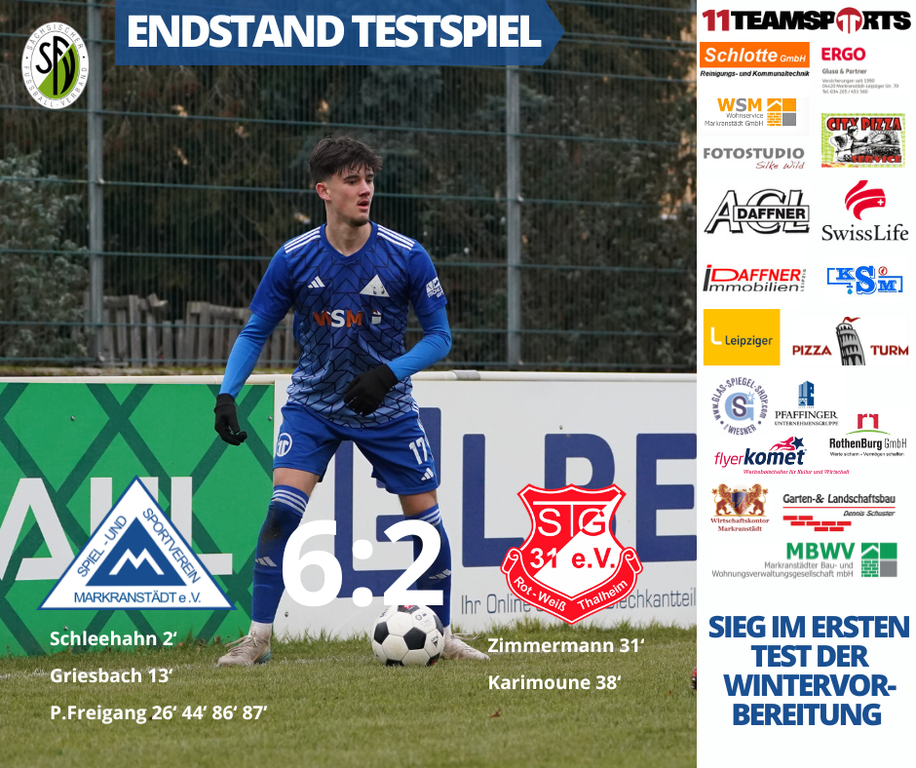 Das erste Testspiel zur Rückrunde der Saison 2025/2026 ist absolviert und mit dem 6:2-Erfolg gegen den Verbandsligisten aus Sachsen-Anhalt startet man erfolgreich ins neue Jahr.