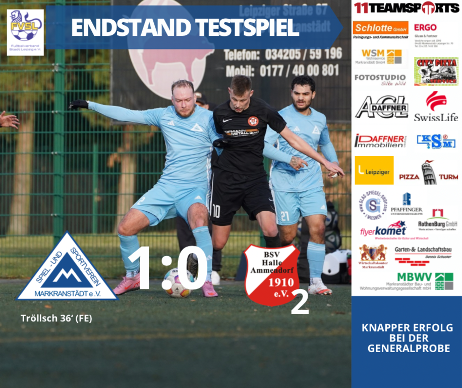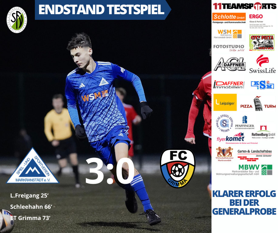 Unsere Mannschaft gewinnt in der Wintervorbereitung zum vierten Mal und bleibt ungeschlagen. Zur Generalprobe vor dem Ligaauftakt nächste Woche gab es gestern ein überzeugendes und verdientes 3:0 gegen den Oberligisten aus Grimma.