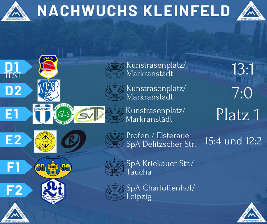 Die Balljungen unseres Spieles gegen den DSC werden von unserer U 15 Mannschaft gestellt. Oliver Saumsiegel und Kevin Rümmler trainieren die Mannschaft seit Saisonbeginn in der Stadtliga Leipzig. Zur Halbserie steht man auf Platz 5 der Tabelle, trifft am 03. Mai im Pokal-Viertelfinale auf Tus Leutzsch und startet am 14.3. mit einem Heimspiel gegen den JFV Neuseenland III wieder in die Rückrunde.