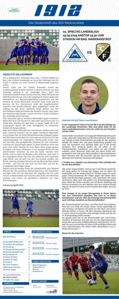 Stadionheft 05.Spieltag gegen SC Freital II Landesliga Saison 2025 / 2026