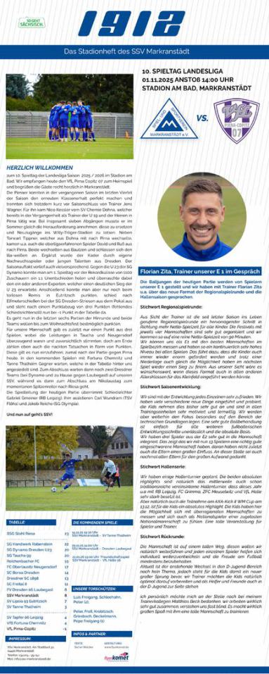 Stadionheft 10.Spieltag gegen VfL Pirna Copitz 07 Landesliga Saison 2025 / 2026