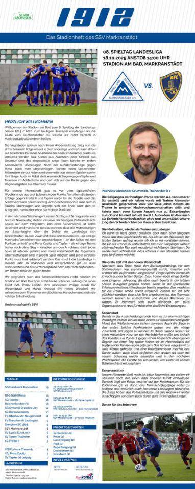 Stadionheft 08.Spieltag gegen Reichenbacher FC Landesliga Saison 2025 / 2026