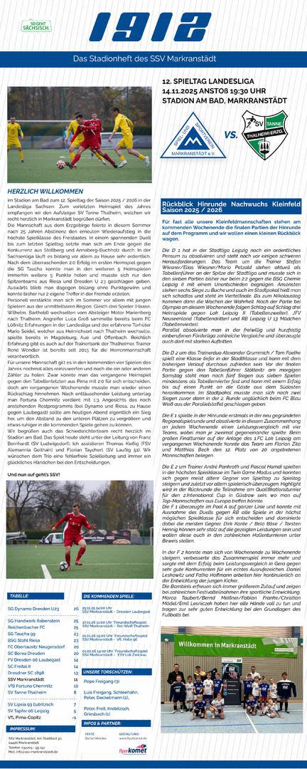 Stadionheft 12.Spieltag gegen SV Tanne Thalheim Landesliga Saison 2025 / 2026