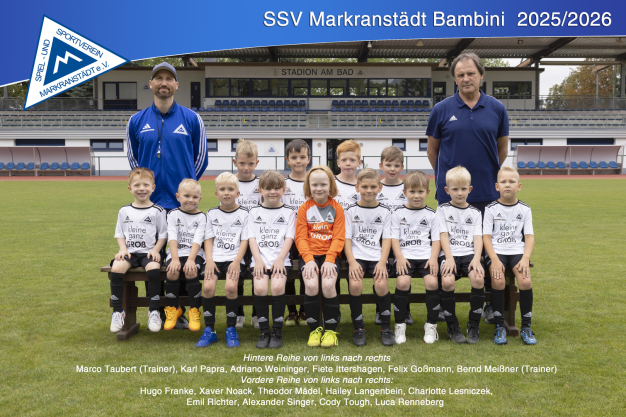 Im SSV Kidsclub spielen die jüngsten Kicker des SSV Markranstädt. Unter der Obhut ausgebildeter und lizenzierter Trainer machen Kinder im Alter von 5 (U6 - Minis) bis 6 Jahren (U7 - Bambinis) hier ihre erste Bekannschaft mit dem runden Objekt. Sie sollen über Bewegungsgrundlagen und kleinen Ballübungen dem Sport Fußball näher gebracht werden und eine Leidenschaft für die schönste Nebensache der Welt entwickeln. Dafür ist bei der U6 als jünsgter Jahrgang ein Training pro Woche vorgesehen, die U7 trainiert zweimal wöchentlich. Ein Spielbertrieb ist noch nicht vorgesehen, aber mit zunehmenden Können und Alter sammeln die Kids des SSV Kidsclub schon Erfolgserlebnisse in altersgerechten Spielfesten und Turnieren mit anderen Vereinen, wo alle Kinder auf allen Positionen Erfahrungen in kleinen Spielformen wie Funino machen.